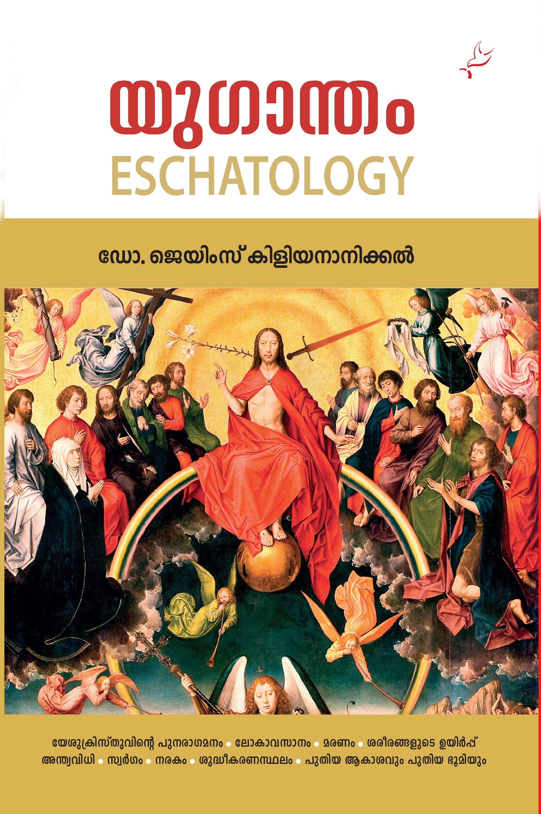 യുഗാന്തം എങ്ങനെയായിരിക്കും? മരണത്തിന് അർത്ഥമുണ്ടോ? യേശുവിന്റെ പുനരാഗമനം എപ്പോൾ സംഭവിക്കും? എന്തായിരിക്കും പുനരാഗമനത്തിന്റെ അടയാളങ്ങൾ? അന്തി ക്രിസ്തുവിന്റെ ആഗമനം എപ്രകാരമായിരിക്കും? ശരീരങ്ങളുടെ ഉയിർപ്പ് സാധ്യമോ? അന്ത്യ വിധി സത്യമോ മിഥ്യയോ? എന്താണ് സ്വർഗം? സ്വർഗത്തിൽ നമ്മുടെ അവസ്ഥയെന്താണ്? ശുദ്ധീകരണ സ്ഥലം എന്താണ്? നിത്വനരകം ഒരു യാഥാർത്ഥ്യമോ? ആയിരം വർഷത്തെ ഭരണം, 666 എന്ന മുദ്ര, തിന്മയുടെ ത്രിശക്തികൾ എന്നിവ എന്താണ്? യേശു പാതാളത്തി ലിറങ്ങി എന്നതിന്റെ അർത്ഥമെന്ത്? സ്നേഹം തന്നെയായ ദൈവം എങ്ങനെ മനുഷ്യനെ നിയനരകാഗ്നിയിൽ കൈവിടും? ദൈവ നീതിയും ദൈവ കരുണയും എങ്ങനെ പൊരു ത്തപ്പെടും? നിത്യത എന്നാലെന്താണ്? ദൈവരാജ്യത്തിന്റെ സാക്ഷാത്കാരവും സഭയുടെ ഭാവി മഹത്വവും ഭാവനാ സൃഷ്ടിയോ? പുതിയ ആകാശവും പുതിയ ഭൂമിയും ഉണ്ടാകുമോ? പുണ്യവാന്മാരുടെ ഐക്യം എന്നാലെന്ത്? ഈ വിധം യുഗാന്ത ദൈവശാസ്ത്രത്തിന്റെ വിവിധ വിഷയങ്ങളെ സമഗ്രതയിൽ അവതരിപ്പിക്കുന്ന അതിവിശിഷ്ട ഗ്രന്ഥം! ദൈവശാസ്ത്ര പഠി താക്കളും വിശ്വാസികളും അറിഞ്ഞിരിക്കേണ്ട വിശ്വാസവിഷയങ്ങളുടെ നേർക്കാഴ്ച്ച.