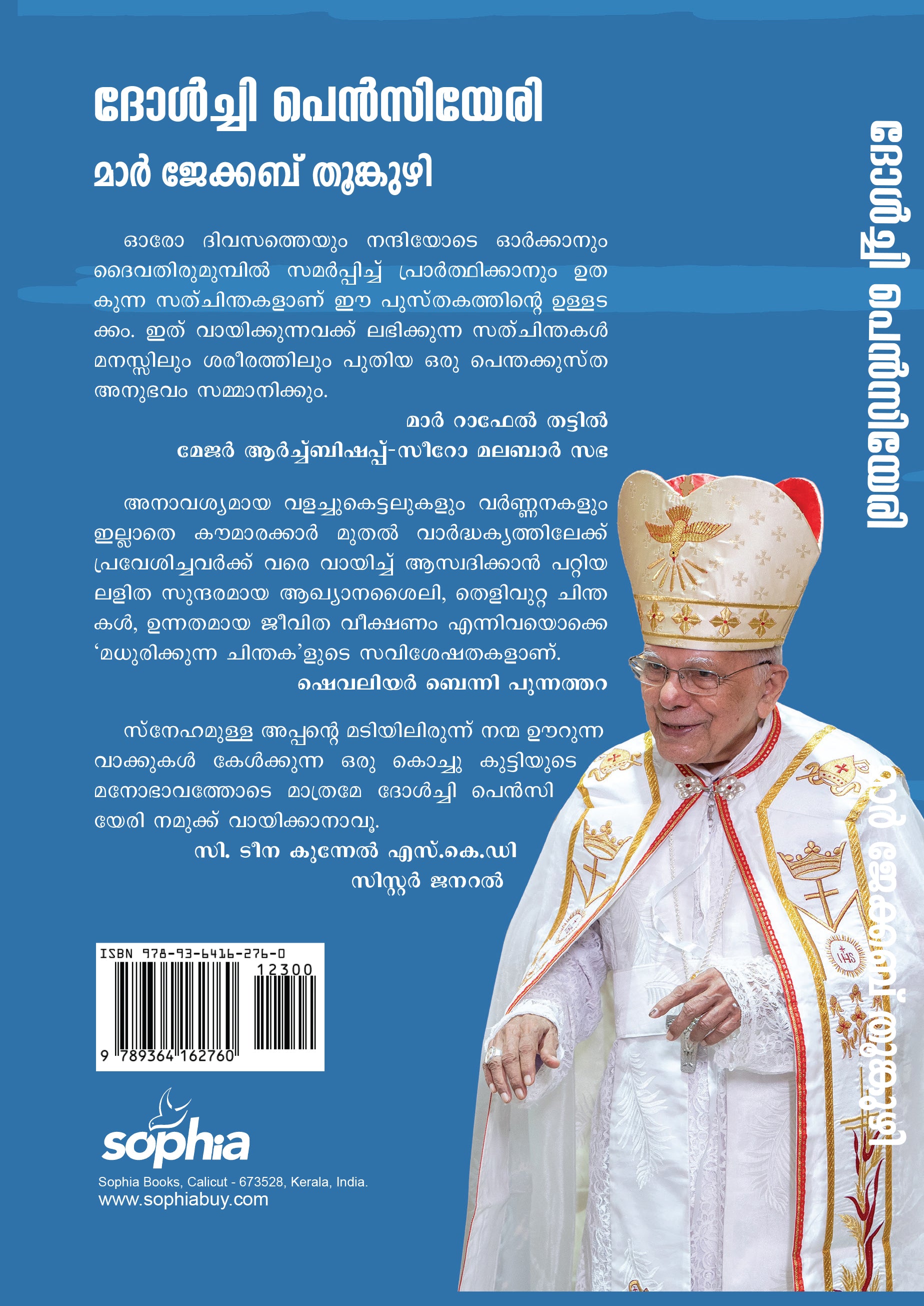 ഓരോ ദിവസത്തെയും നന്ദിയോടെ ഓർക്കാനും ദൈവതിരുമുമ്പിൽ സമർപ്പിച്ച് പ്രാർത്ഥിക്കാനും ഉതകുന്ന സത്ചിന്തകളാണ് ഈ പുസ്തകത്തിൻ്റെ ഉള്ളടക്കം. ഇത് വായിക്കുന്നവക്ക് ലഭിക്കുന്ന സത്ചിന്തകൾ മനസ്സിലും ശരീരത്തിലും പുതിയ ഒരു പെന്തക്കുസ്ത അനുഭവം സമ്മാനിക്കും.