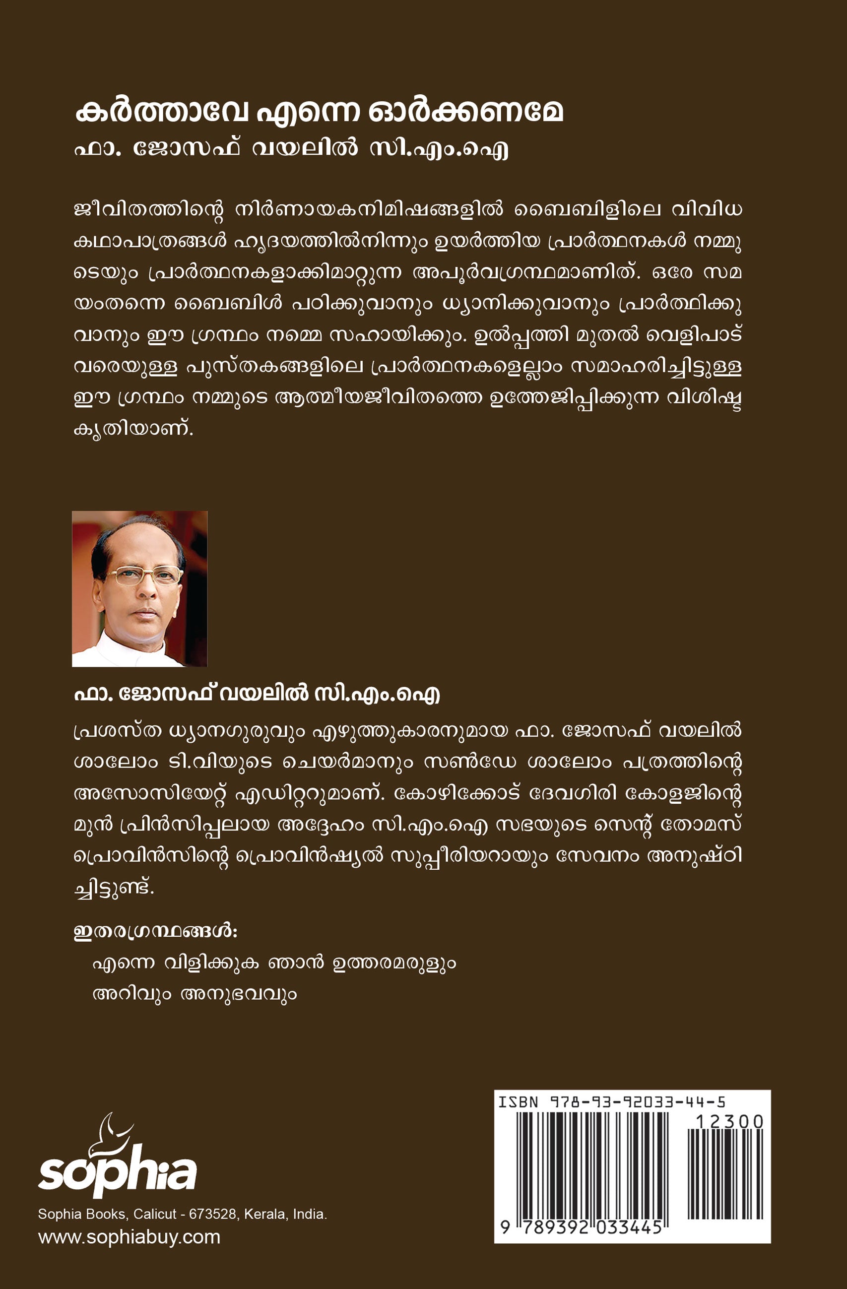 ജീവിതത്തിൻെ നിർണായകനിമിഷങ്ങളിൽ ബൈബിളിലെ വിവിധ കഥാപാത്രങ്ങൾ ഹൃദയത്തിൽനിന്നും ഉയർത്തിയ പ്രാർത്ഥനകൾ നമ്മുടെയും പ്രാർത്ഥനകളാക്കിമാറ്റുന്ന അപൂർവഗ്രന്ഥമാണിത് .