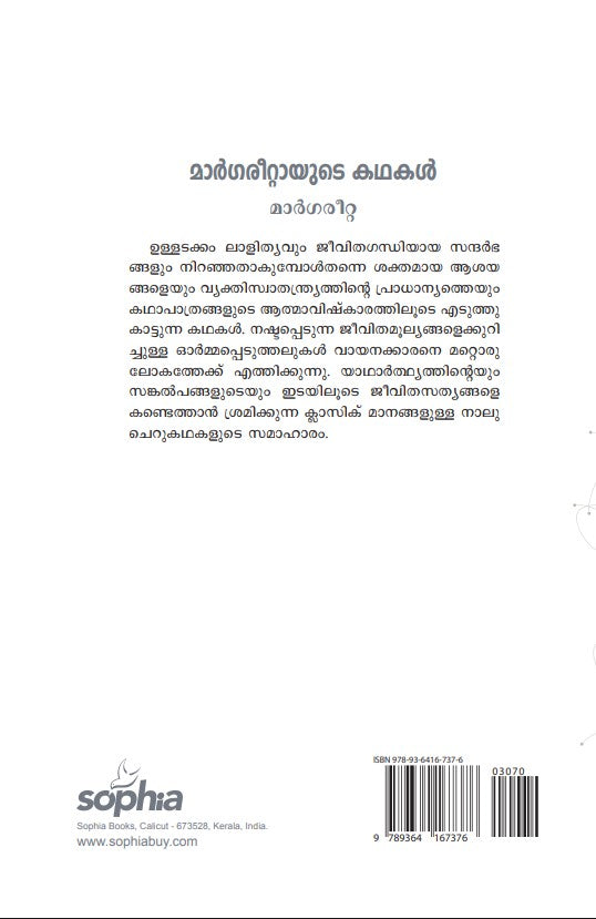 ഉള്ളടക്കം ലാളിത്യവും ജീവിതഗന്ധിയായ സന്ദർഭങ്ങളും നിറഞ്ഞതാകുമ്പോൾതന്നെ ശക്തമായ ആശയങ്ങളെയും വ്യക്തിസ്വാതന്ത്യ്രത്തിൻ്റെ പ്രാധാന്യത്തെയും കഥാപാത്രങ്ങളുടെ ആത്മാവിഷ്കാരത്തിലൂടെ എടുത്തു കാട്ടുന്ന കഥകൾ. നഷ്ടപ്പെടുന്ന ജീവിതമൂല്യങ്ങളെക്കുറിച്ചുള്ള ഓർമ്മപ്പെടുത്തലുകൾ വായനക്കാരനെ മറ്റൊരു ലോകത്തേക്ക് എത്തിക്കുന്നു. യാഥാർത്ഥ്യത്തിന്റെയും സങ്കൽപങ്ങളുടെയും ഇടയിലൂടെ ജീവിതസത്യങ്ങളെ കണ്ടെത്താൻ ശ്രമിക്കുന്ന ക്ലാസിക് മാനങ്ങളുള്ള നാലു ചെറുകഥകളുടെ സമാഹാരം.