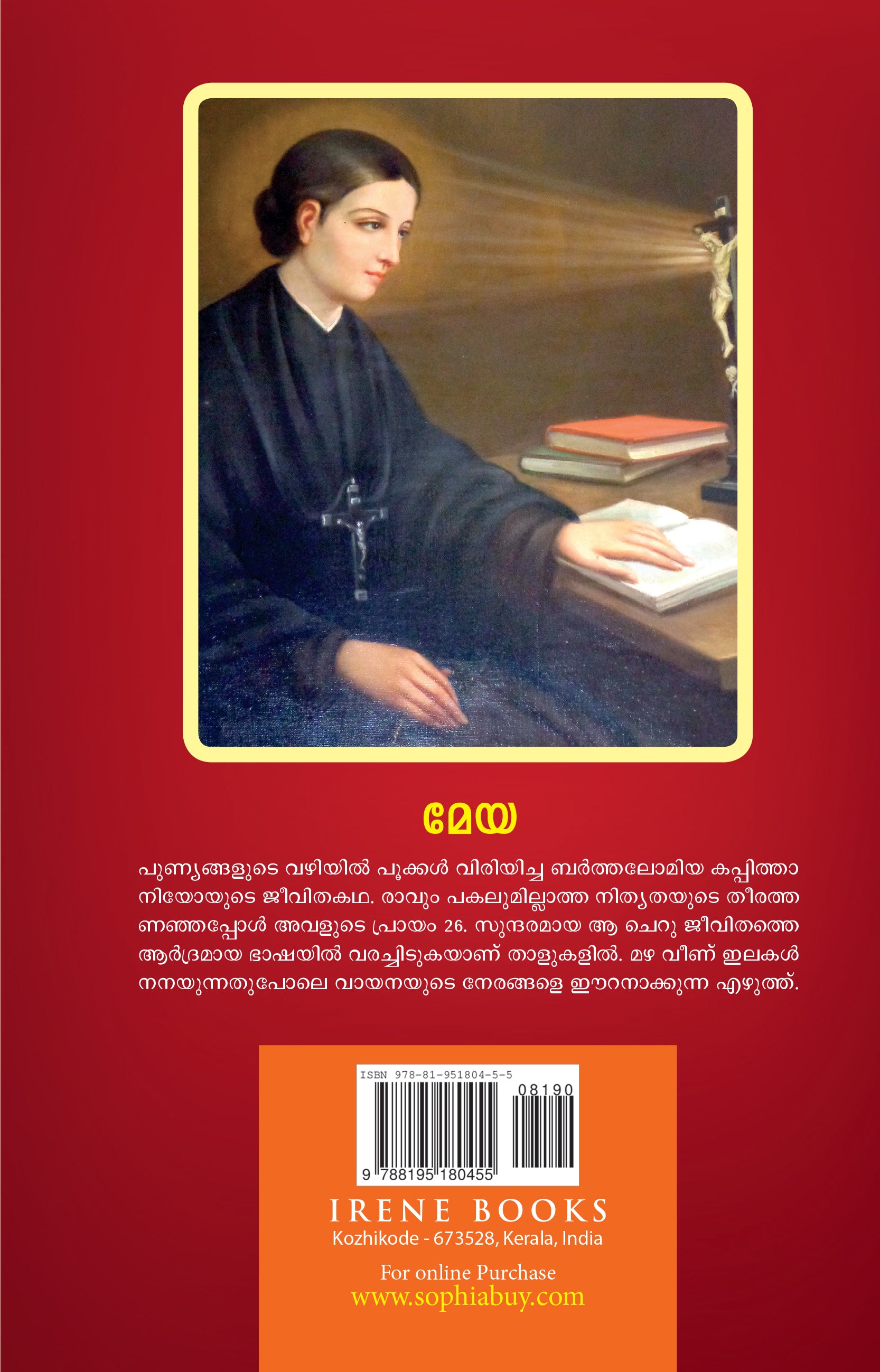 പുണ്യങ്ങളുടെ വഴിയിൽ പൂക്കൾ വിരിയിച്ച ബർത്തലോമിയ കപ്പിത്താ നിയോയുടെ ജീവിതകഥ . രാവും പകലുമില്ലാത്ത നിത്യതയുടെ തീരത്ത ണഞ്ഞപ്പോൾ അവളുടെ പ്രായം 26. സുന്ദരമായ ആ ചെറു ജീവിതത്തെ ആർദ്രമായ ഭാഷയിൽ വരച്ചിടുകയാണ് താളുകളിൽ . മഴ വീണ് ഇലകൾ നനയുന്നതുപോലെ വായനയുടെ നേരങ്ങളെ ഈറനാക്കുന്ന എഴുത്ത്