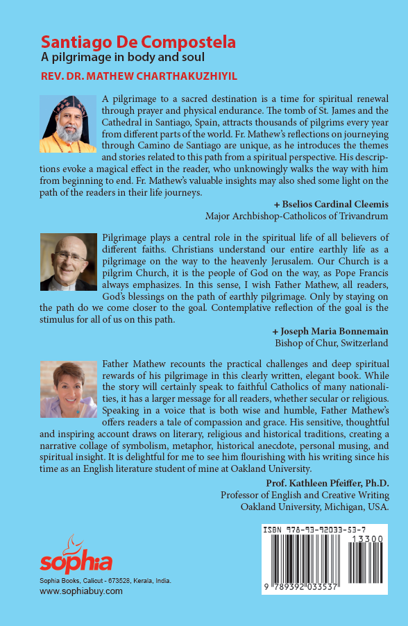 Father Mathew recounts the practical challenges and deep spiritual rewards of his pilgrimage in this clearly written, elegant book. While the story will certainly speak to faithful Catholics of many nationali- ties, it has a larger message for all readers, whether secular or religious. Speaking in a voice that is both wise and humble, Father Mathew's offers readers a tale of compassion and grace. His sensitive, thoughtful and inspiring account draws on literary, religious and historical traditions, creating a narrative collage of symbolism, metaphor, historical anecdote, personal musing, and spiritual insight. It is delightful for me to see him flourishing with his writing since his time as an English literature student of mine at Oakland University.