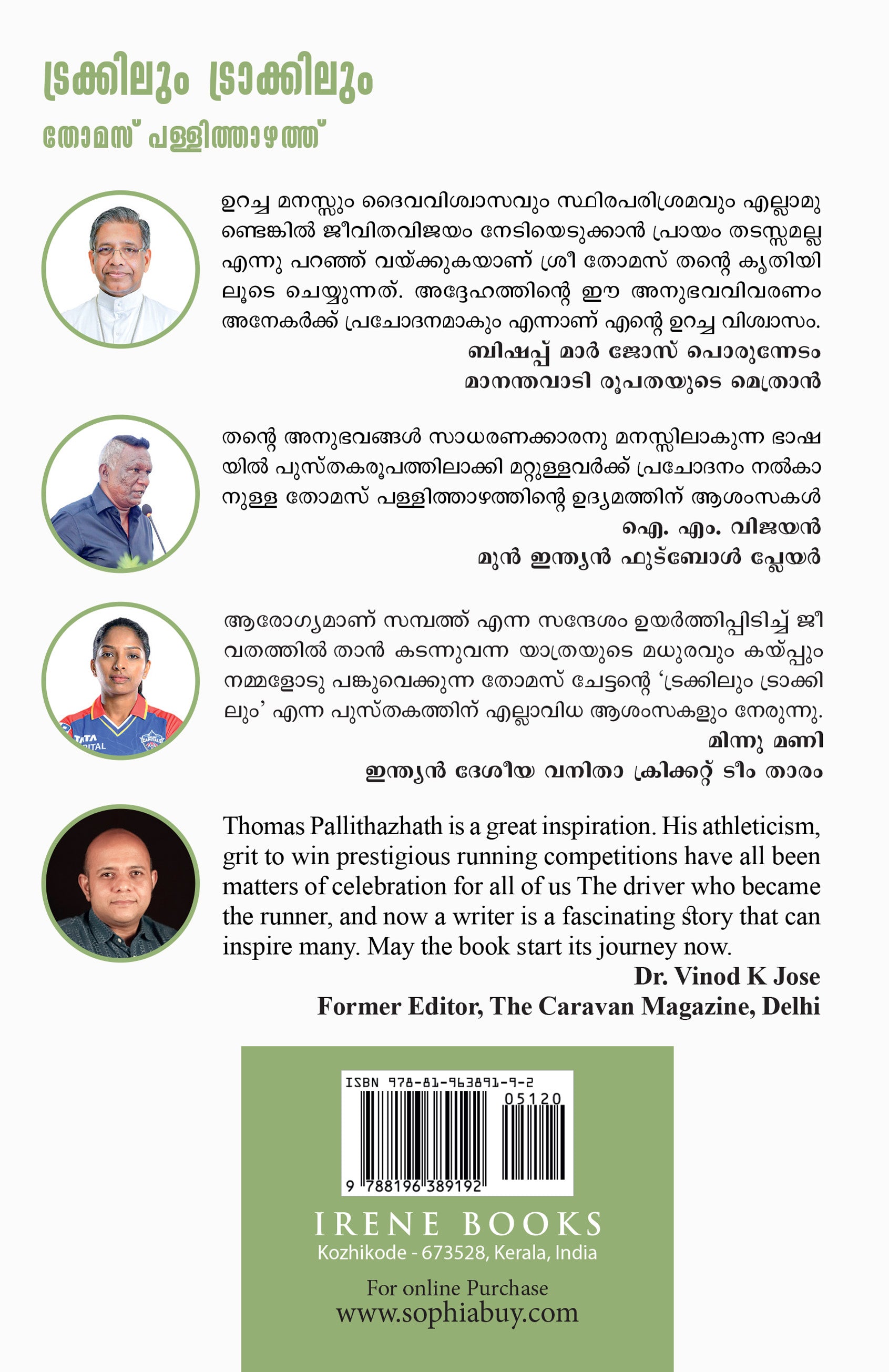 ആരോഗ്യമാണ് സമ്പത്ത് എന്ന സന്ദേശം ഉയർത്തിപ്പിടിച്ച് ജീവിതത്തിൽ താൻ കടന്നുവന്ന യാത്രയുടെ മധുരവും കയ്പ്പും നമ്മളോടു പങ്കുവെക്കുന്നതാണ് തോമസ് ചേട്ടൻ്റെ 'ട്രക്കിലും ട്രാക്കിലും' എന്ന പുസ്തകം.