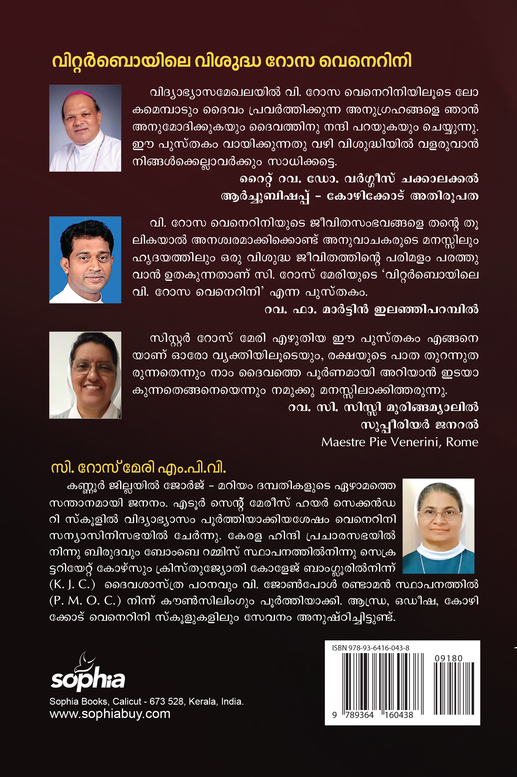 വിദ്യാഭ്യാസമേഖലയിൽ വി .റോസ വെനീറിനിയിലൂടെ ലോകമെമ്പാടും ദൈവം പ്രവർത്തിക്കുന്ന അനുഗ്രഹങ്ങളെ ഞാൻ അനുമോദിക്കുകയും ദൈവത്തിനു നന്ദി പറയുകയും ചെയ്യുന്നു .ഈ പുസ്തകം വായിക്കുന്നത് വഴി വിശുദ്ധിയിൽ വളരുവാൻ നിങ്ങൾക്കെല്ലാവർക്കും സാധിക്കട്ടെ .